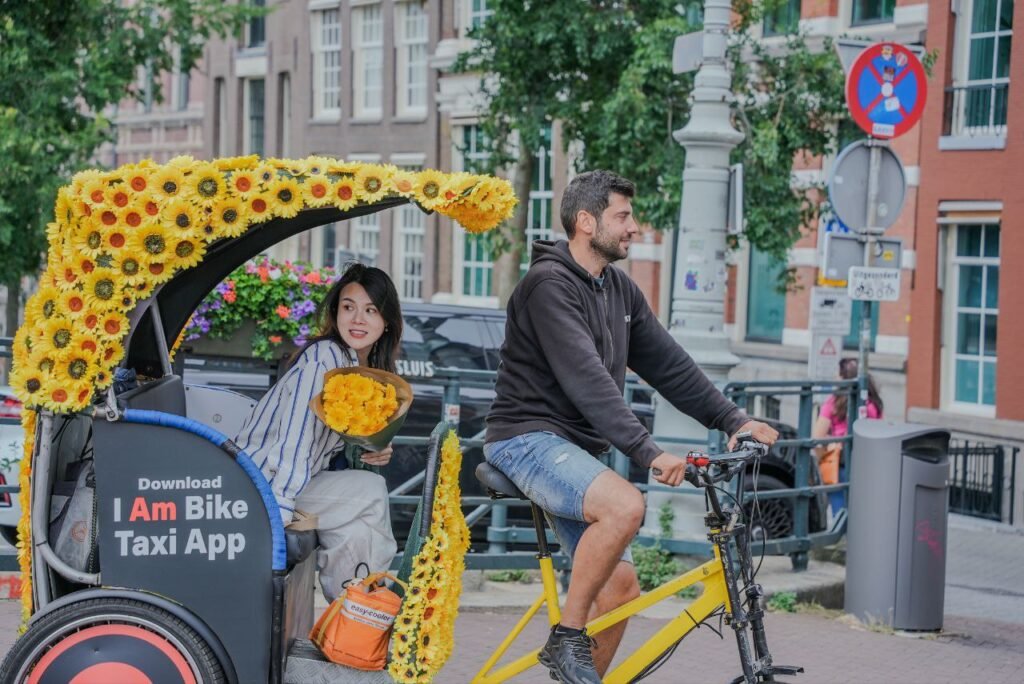 One of the most unique ways to propose in Amsterdam is on the Bike Taxi itself! 🚲🌸 Ride through canals, stop on a scenic bridge πŸŒ‰, and when your partner least expects it – surprise them with a flower-decorated bike taxi proposal. 🎁